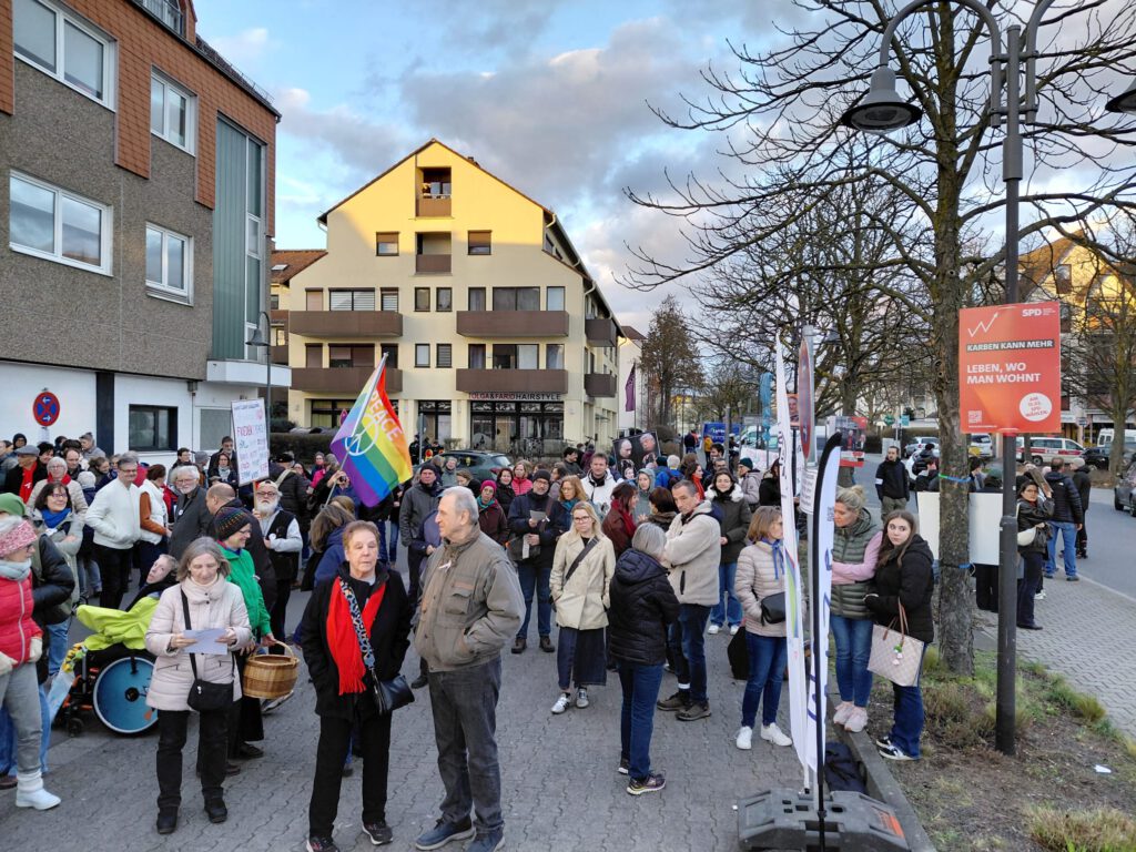 Am vergangenen Samstag trafen sich mehrere OMAS GEGEN RECHTS und ca. 300 weitere Menschen am Bürgerzentrum in Karben, um die Demokratie zu feiern.