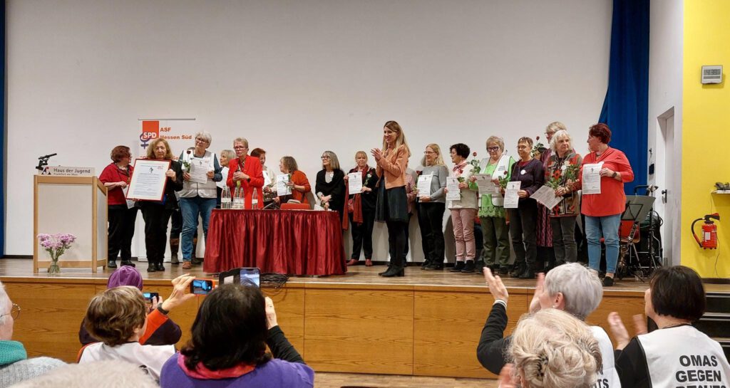 Am 17. Januar 2026 wurde in Frankfurt von den SPD-Frauen Hessen Süd der Olympe-de-Gouges-Preis verliehen, dieses Mal an die OMAS GEGEN RECHTS. Es wurde ein schöner Nachmittag, ein Treffen mit vielen Bekannten und fröhlichen Gesprächen.